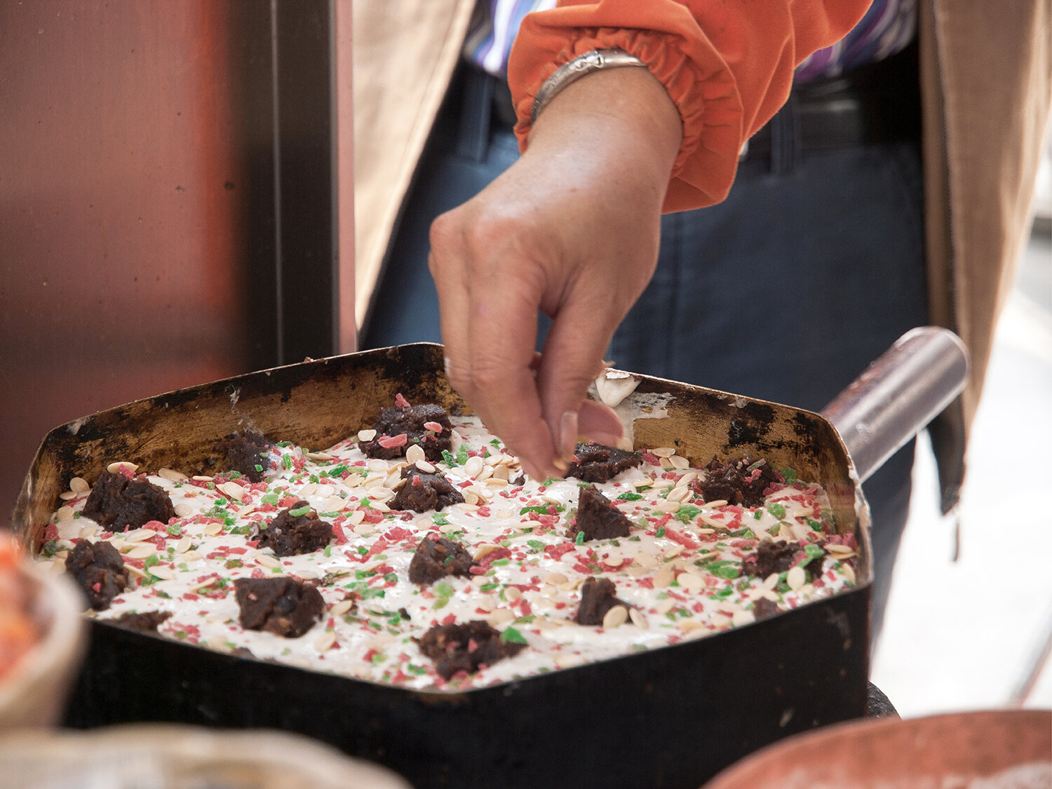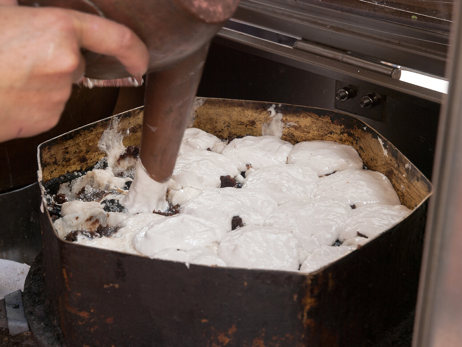 Sie lernte dies Handwerk in den 1990er Jahren, musste es aber aus gesundheitlichen Gründen inzwischen aufgeben. Sie berichtet, dass sie allmorgendlich um drei oder vier Uhr mit den Vorbereitungen begann, auch die Bohnenfüllung hat sie selbst gefertigt. Aufwändig!