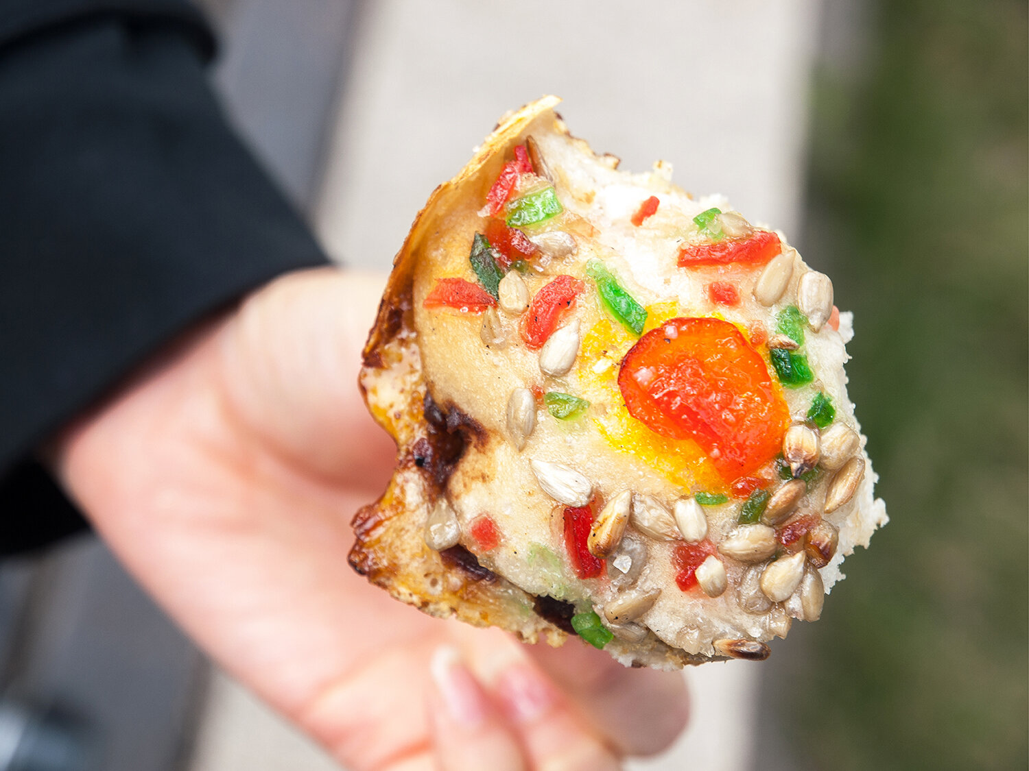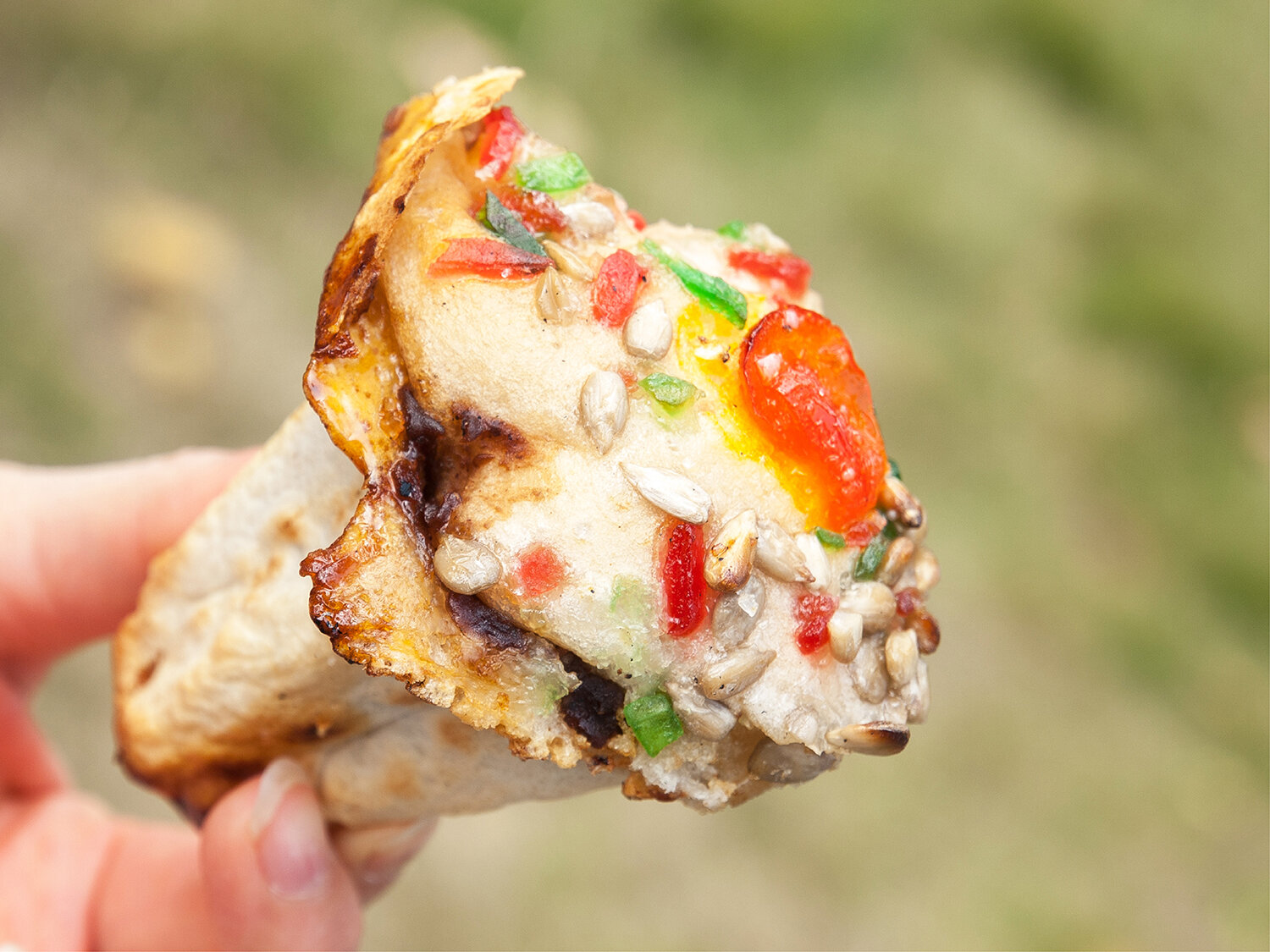 Nach Lust und Laune wird der Begonienkuchen mit verschiedenen Toppings wie Sesamsaat, Sonnenblumenkernen oder Erdnüssen bestreut.