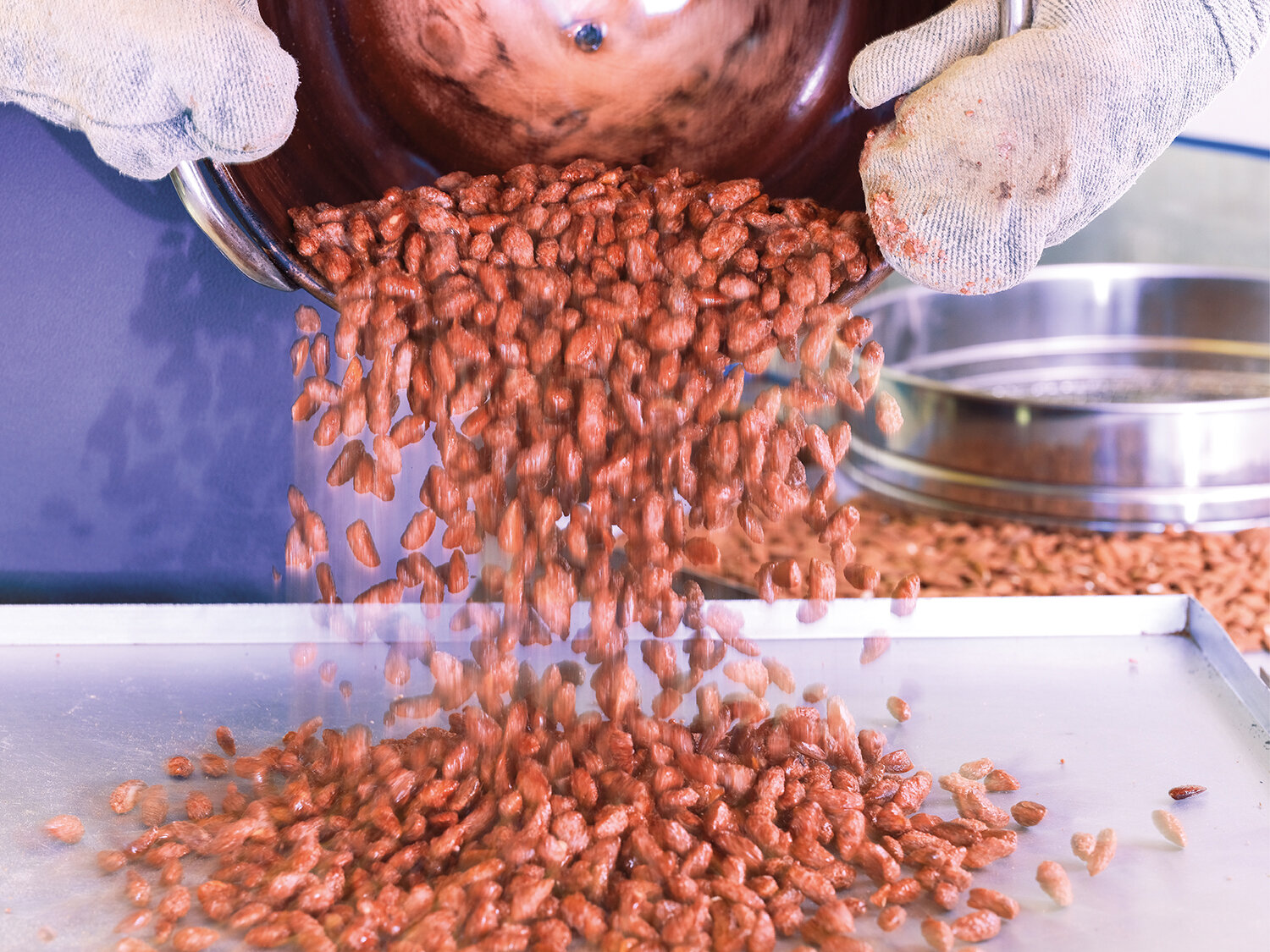 Der Mandelbaum wird schon seit etwa 4.000 Jahren kultiviert, gemeinhin gilt Asien als sein Ursprung. Nebenbei: Mandeln sind botanisch gesehen keine Nüsse, sondern Steinobst, ebenso wie Aprikosen oder Pfirsiche. Doch Mandelkerne eignen sich sehr viel besser zum Rösten, was vermutlich schon seit Jahrhunderten geschah – und ihr spezifisches Aroma entfaltet.