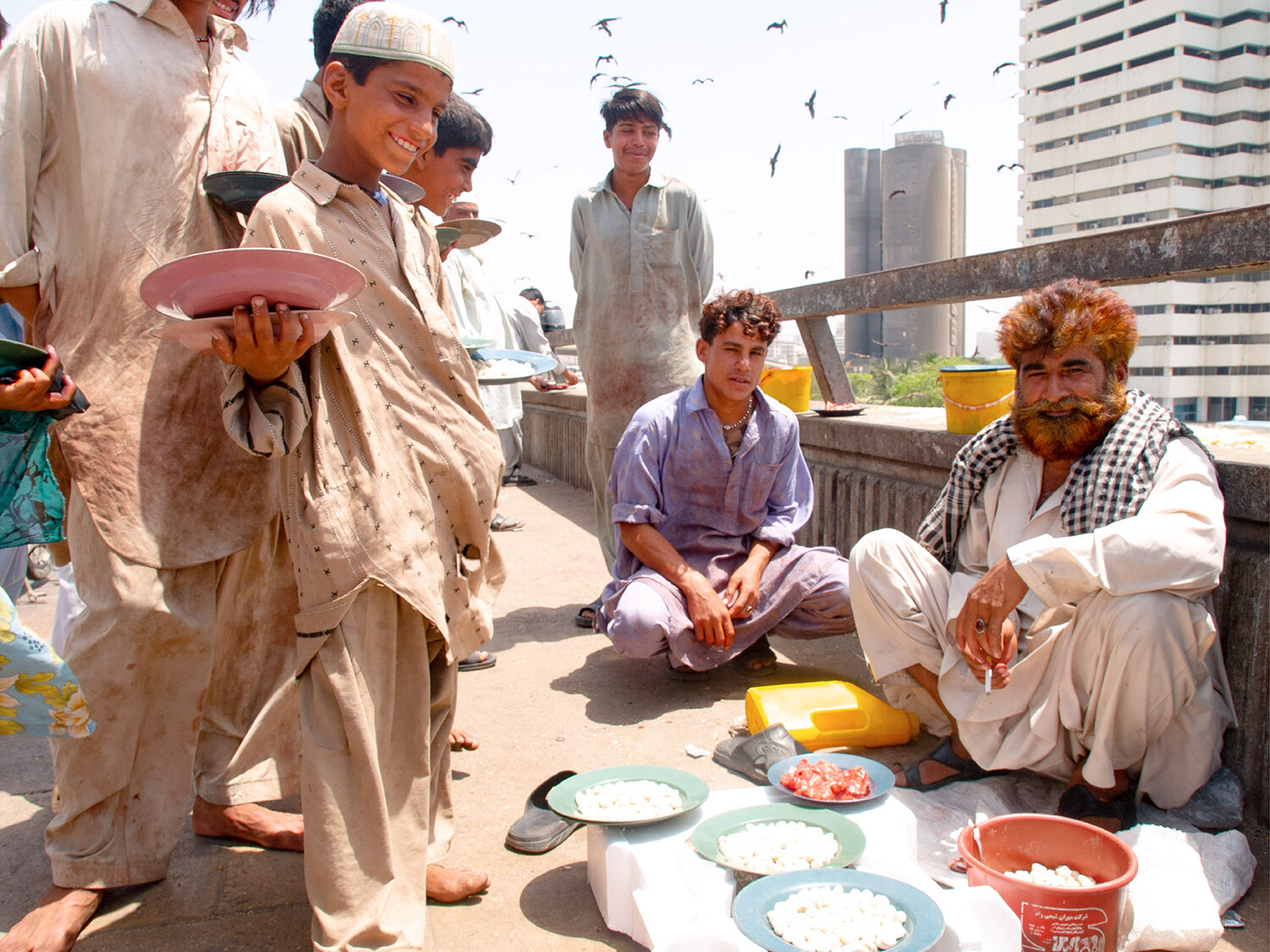 Und trotzdem hat mich die Stadt mit ihren gar nicht militanten, vielmehr liebenswerten, lebensfrohen, fremden Besuchern gegenüber aufgeschlossenen Bewohnern auf Anhieb fasziniert. Niemals Argwohn, stets ein Lächeln. Spektakuläres Ereignis: die Fütterung der Raubvögel auf der Native Jetty Bridge, eine der ältesten Brücken Karatschis zwischen der Stadt und dem Hafen, schon 1854 eingeweiht.