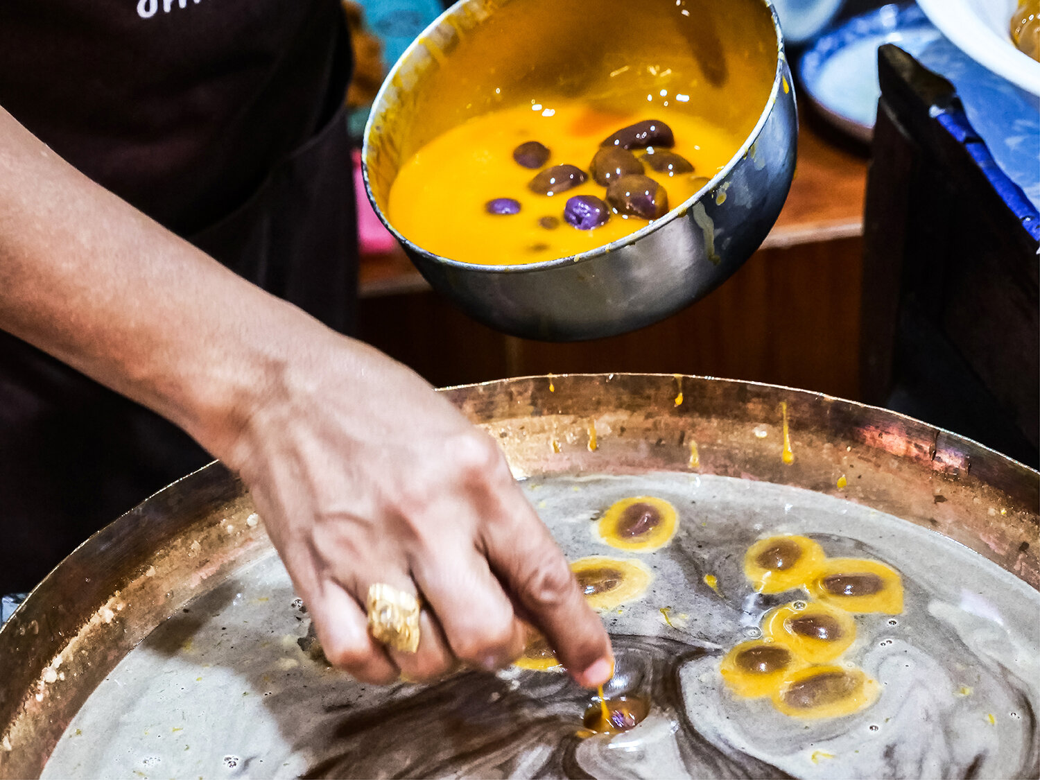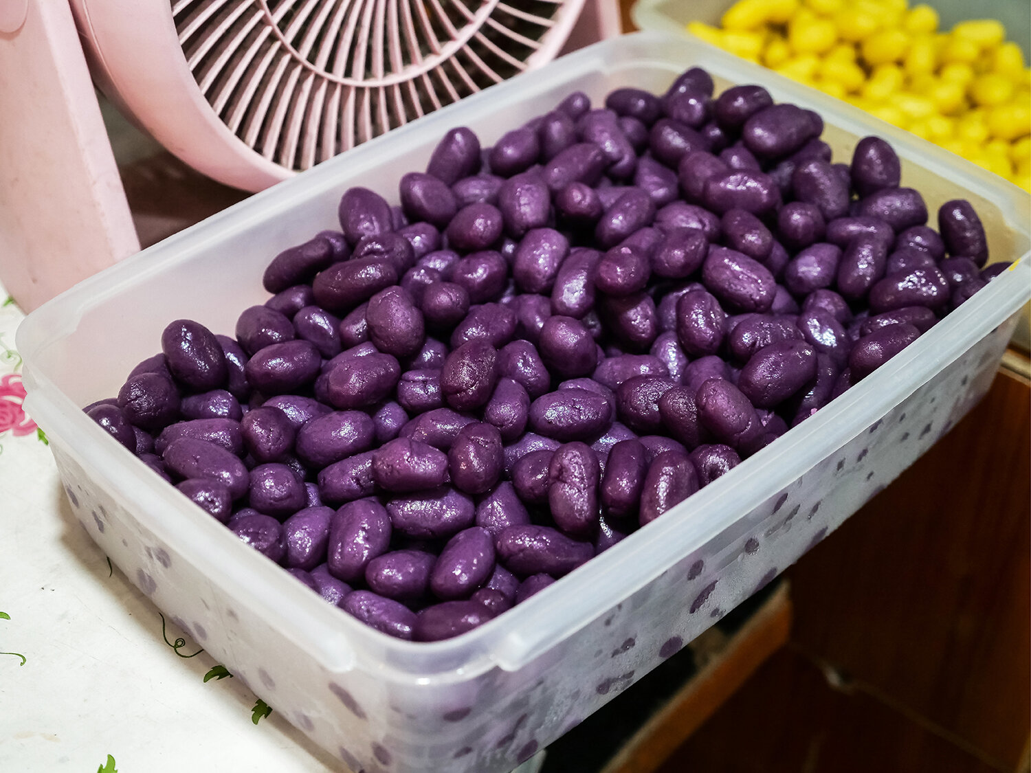 Die Herstellung nimmt etwas Zeit in Anspruch. Die gedämpften Mungobohnen werden zermahlen und mit Zucker und Kokosmilch vermischt, so dass ein süßes Püree entsteht, das unter fleißigem Rühren bei niedriger Hitze gekocht wird. Ergebnis: eine geschmeidige, leicht formbare Paste.